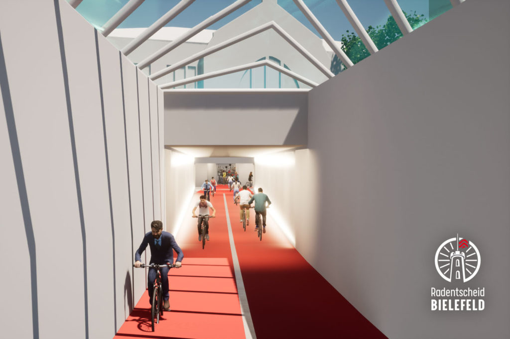Große Freude beim Radentscheid Bielefeld: Mit 8 Millionen Euro EU- und Landesmitteln sieht die Initiative die Finanzierung für ein zentrales Projekt der Bielefelder Mobilitätswende als endgültig gesichert. Die Radstation am Hauptbahnhof, vom Radentscheid im Mai 2021 als Impuls in die Stadtgesellschaft getragen, könne nun in die Umsetzung gehen.