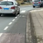 Der seitliche Mindestabstand beim Überholen von Radfahrenden von 1,5 m gemäß § 5 Absatz 4 Satz 3 StVO wird durch die überwiegende Mehrheit der dazu verpflichteten Kraftfahrenden bei der Einfahrt in den Kreisverkehr nicht eingehalten. Viele Kraftfahrende verschätzen sich bei der recht plötzlichen Verengung des Fahrstreifens und dem Ende des Radverkehrstreifens. Dazu vermittelt der kurze, viel zu schmale Schutzstreifen den Eindruck, dass Radfahrende noch überholt werden können. (Siehe die folgenden Fotos.)